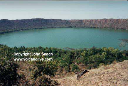 Lonar Meteorite crater in central India. This is the only hypervelocity impact crater in Bassalt rock. This interesting combination shows asteroid impact in Deccan lava. Asteroid impact or Deccan volcanism may have been the trigger for the decline of the dinosaurs 65 million years ago.