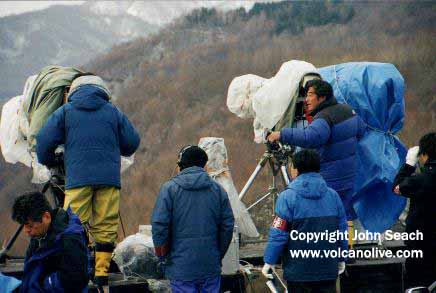 Media keeping watch on Usu volcano in 2000.